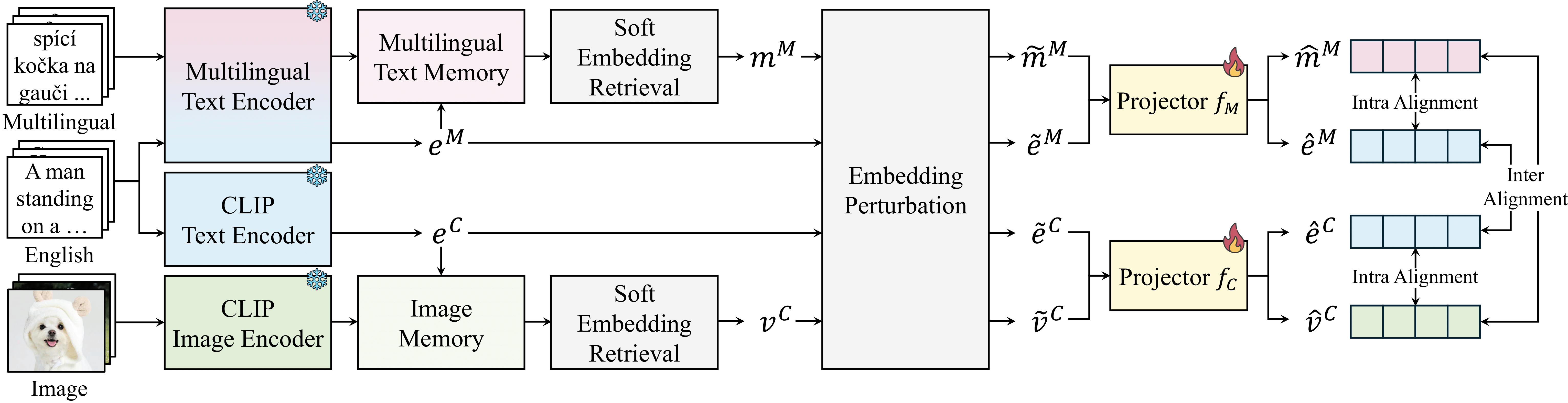 Lightweight framework that enables multilingual vision–language alignment for underrepresented languages by using English as a semantic pivot and requiring no paired supervision.